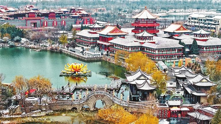 2026年新年伊始的首場降雪,為古城開封披上銀裝,勾勒出一幅詩意盎然的宋韻畫卷。袁洋攝