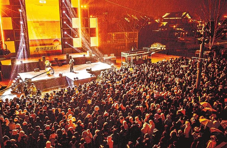 1月1日凌晨,建業(yè)電影小鎮(zhèn)摩登星光派對(duì)現(xiàn)場人山人海。游客在復(fù)古廣場音樂會(huì)釋放激情,在彩帶雨中定格跨年記憶。本報(bào)記者聶冬晗攝