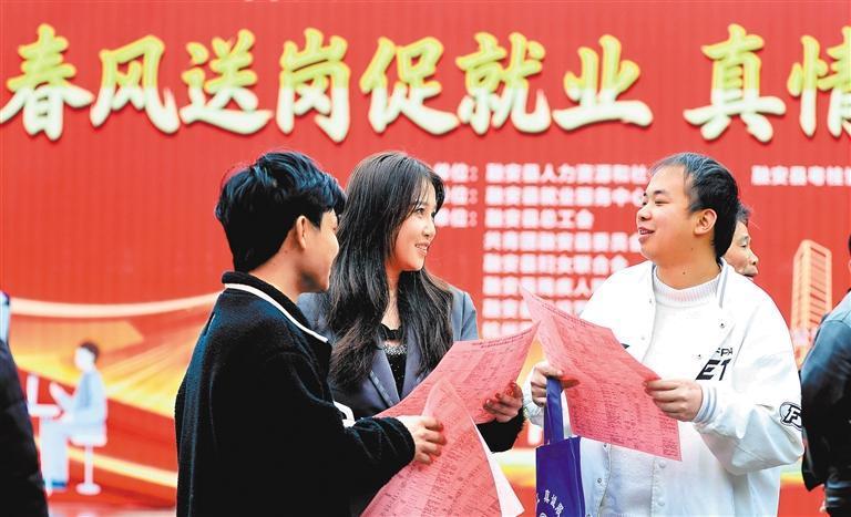 2月25日,廣西壯族自治區(qū)柳州市融安縣長安廣場,求職者在了解招聘崗位信息。覃慶和攝(中經(jīng)視覺)