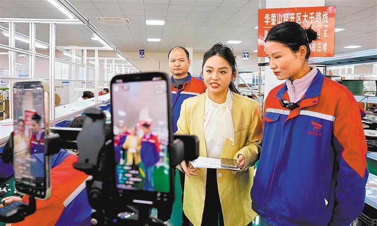 2月26日,四川省華鎣市組織網(wǎng)絡(luò)主播走進(jìn)企業(yè)生產(chǎn)車間,通過直播平臺(tái)向網(wǎng)絡(luò)求職者介紹企業(yè)情況。當(dāng)?shù)卮罱ㄆ髽I(yè)和求職者崗位對接平臺(tái),實(shí)現(xiàn)“崗位找人”與“人找崗位”雙向互動(dòng)。周松林?jǐn)z(中經(jīng)視覺)