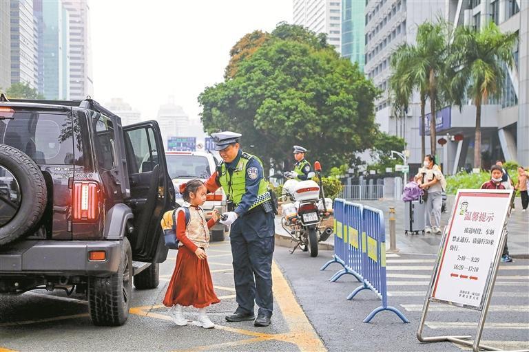 3月2日,2026年春季新學(xué)期開學(xué)首日恰逢周一早高峰,通勤與送學(xué)車流“雙疊加”,學(xué)校周邊道路交通壓力增大。為守護(hù)學(xué)生安全入校、保障周邊交通秩序順暢,深圳交警全面啟動(dòng)新學(xué)期“護(hù)學(xué)”行動(dòng),以“地面疏導(dǎo)+空中巡查”立體化管理模式,加強(qiáng)警力值守、無人機(jī)護(hù)航、現(xiàn)場(chǎng)疏導(dǎo)、安全勸導(dǎo),多措并舉守護(hù)新學(xué)期校園交通安全。(深圳特區(qū)報(bào)記者 解樹森 賴?yán)?攝影報(bào)道)