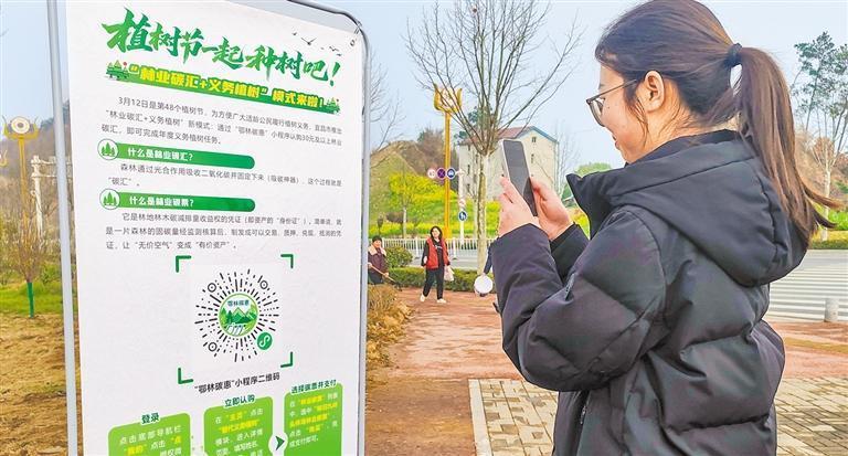 3月10日,湖北省宜昌市秭歸縣市民線上購(gòu)買(mǎi)林業(yè)碳票。當(dāng)?shù)赝瞥觥傲謽I(yè)碳匯+義務(wù)植樹(shù)”模式,讓市民實(shí)現(xiàn)手機(jī)“種碳”。周仕偉攝(中經(jīng)視覺(jué))