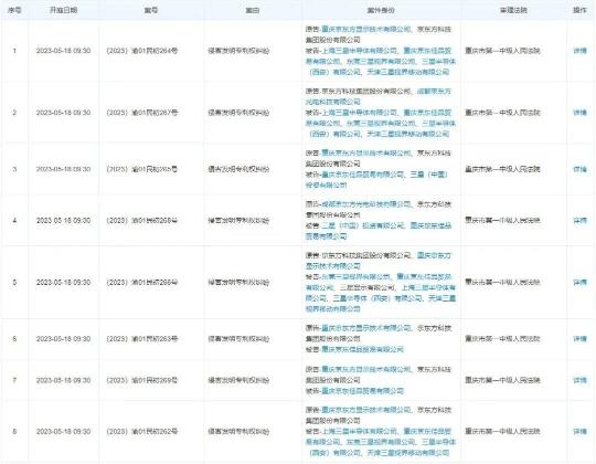 近日,天眼查網(wǎng)站顯示,京東方科技集團股份有限公司新增多則開庭公告。原告還包括重慶京東方顯示技術(shù)有限公司、成都京東方光電科技有限公司,被告則包括上海三星半導(dǎo)體有限公司、三星(中國)投資有限公司、東莞三星視界有限公司、三星半導(dǎo)體(西安)有限公司、天津三星視界移動有限公司等多家三星相關(guān)公司,以及重慶京東佳品貿(mào)易有限公司。