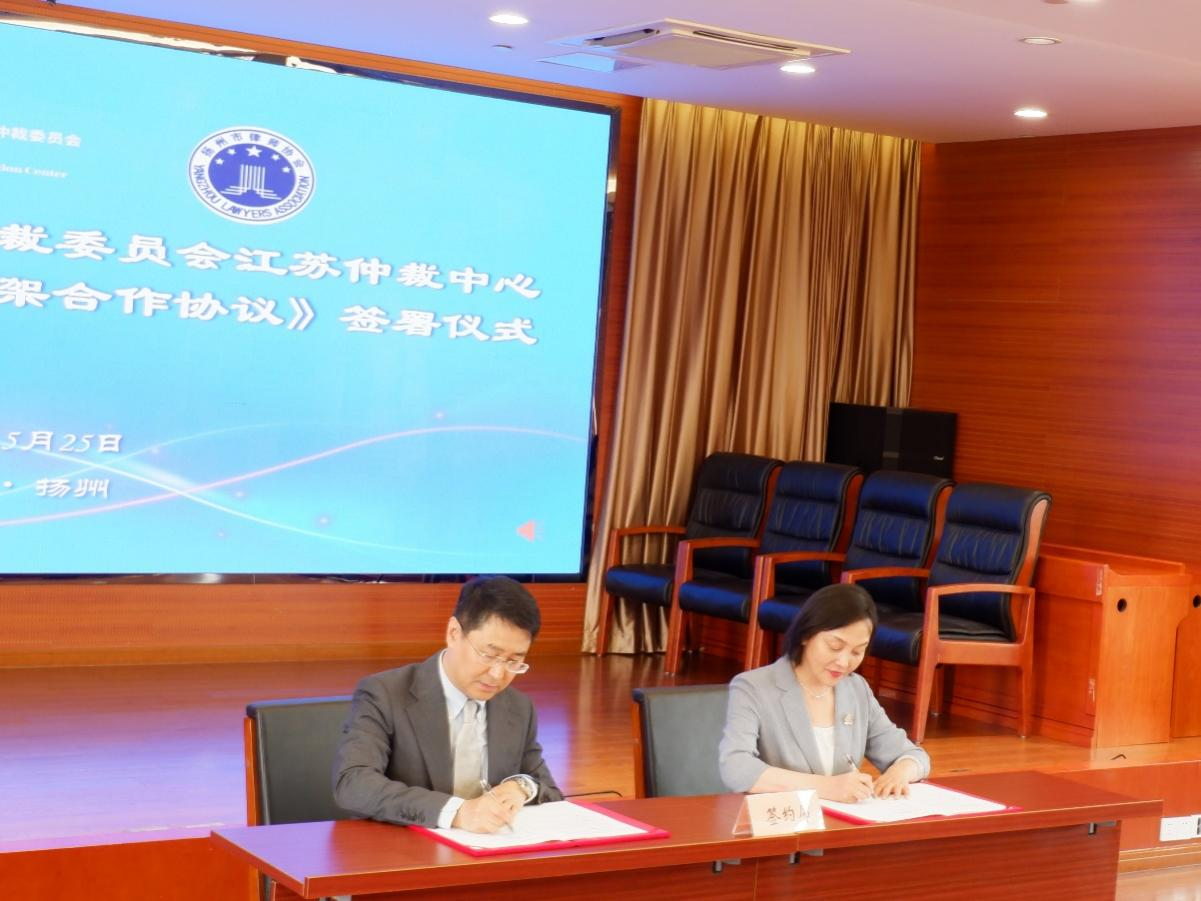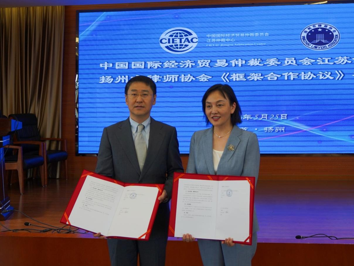 2023年5月25日下午,中國國際經濟貿易仲裁委員會江蘇仲裁中心(以下簡稱“貿仲江蘇中心”)與揚州市律師協(xié)會(以下簡稱“揚州律協(xié)”)在揚州簽署《框架合作協(xié)議》。合作協(xié)議簽署儀式由揚州律協(xié)仲裁法律業(yè)務委員會主任包振宇主持,貿仲仲裁院副院長兼貿仲江蘇中心秘書長谷巖、揚州律協(xié)副會長蔣敏代表雙方在合作協(xié)議上簽字。簽約儀式后,雙方舉辦了“商事爭議多元化解決的實踐與展望”專題研討會。