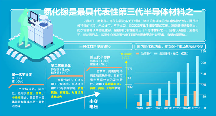 浙商證券的研報(bào)指出,氮化鎵(GaN)是最具代表性的第三代半導(dǎo)體材料之一,禁帶寬度達(dá)到3.4eV。更寬的禁帶寬度、更高的擊穿電場、更高的熱導(dǎo)率、更高的電子飽和速率及更優(yōu)的抗輻照能力,使得其在功率器件、射頻器件、光電器件領(lǐng)域大有作為。隨著5G通信、消費(fèi)電子、新能源汽車、數(shù)據(jù)中心等高景氣度下游逐步提出更高性能要求,有望放量提價(jià)。