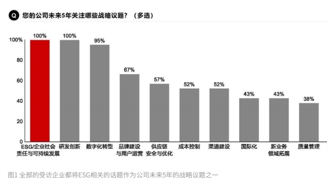 “多項(xiàng)調(diào)查顯示,ESG理念確實(shí)已經(jīng)深入人心。中國(guó)企業(yè)普遍重視ESG,2022哈佛商學(xué)院對(duì)中國(guó)代表型企業(yè)隨機(jī)抽樣調(diào)研表明,100%的受訪企業(yè)都將ESG作為公司未來(lái)5年的戰(zhàn)略議題,其重要程度已經(jīng)比肩研發(fā)創(chuàng)新、數(shù)字化轉(zhuǎn)型等議題?!崩钋嘣f(shuō)。