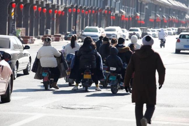 ▲1月15日,河南安陽的市民騎著電動自行車迎著寒風出行。CFP