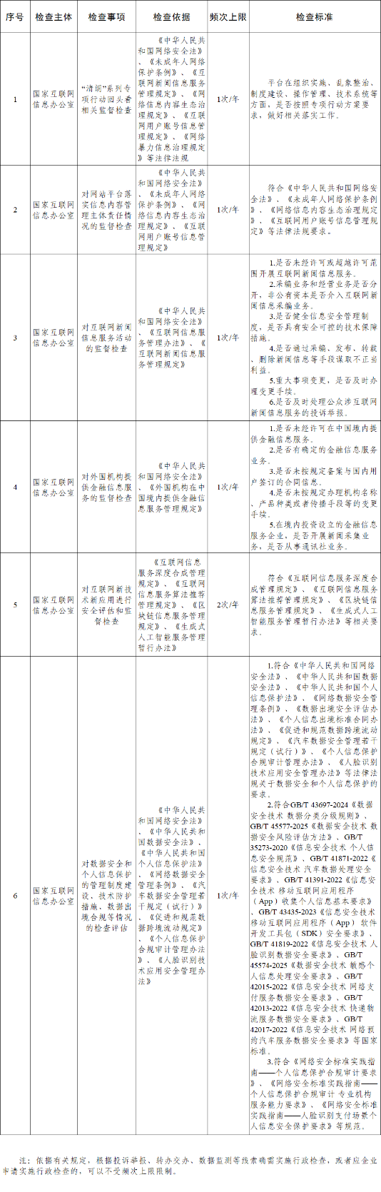 國家互聯(lián)網(wǎng)信息辦公室涉企行政檢查事項清單