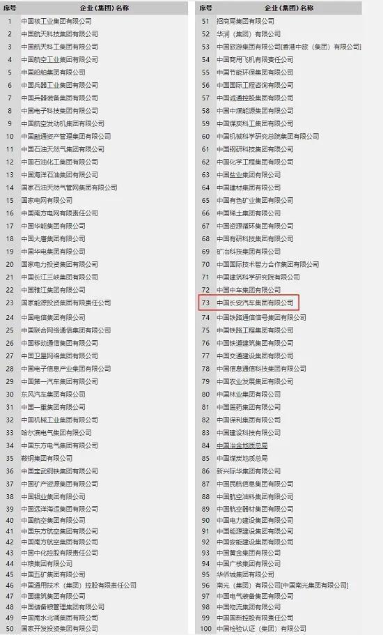 此外,中國經(jīng)濟(jì)網(wǎng)記者查詢到,目前國務(wù)院國資委網(wǎng)站的央企名錄已經(jīng)完成更新,其中,中國長安汽車集團(tuán)已正式入列,序號為73位,這也是繼新增的中國雅江集團(tuán)之后,由國務(wù)院國資委直接管理的第100家央企。