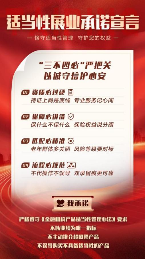 圖為太平人壽業(yè)務(wù)人員“適當性展業(yè)承諾宣言”海報