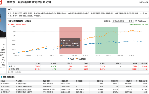 從基金業(yè)績情況來看,解文增自2022年12月29日起開始管理西部利得合贏,截至2025年9月24日,西部利得合贏A的任職回報為7.38%、年化回報為2.63%,在全市場排名處于末位20%。