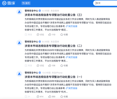 1月19日,雪球安全中心發(fā)布關(guān)于深入開展涉資本市場(chǎng)違規(guī)信息專項(xiàng)整治的公告。雪球此次重點(diǎn)整治四類違規(guī)行為:一是過度炒作、誘導(dǎo)跟風(fēng)交易乃至操縱市場(chǎng)的違規(guī)行為:二是非法證券投資咨詢及違規(guī)導(dǎo)流;三是網(wǎng)絡(luò)黑灰產(chǎn)及團(tuán)伙化違規(guī)操作;四是編造傳播虛假不實(shí)信息。