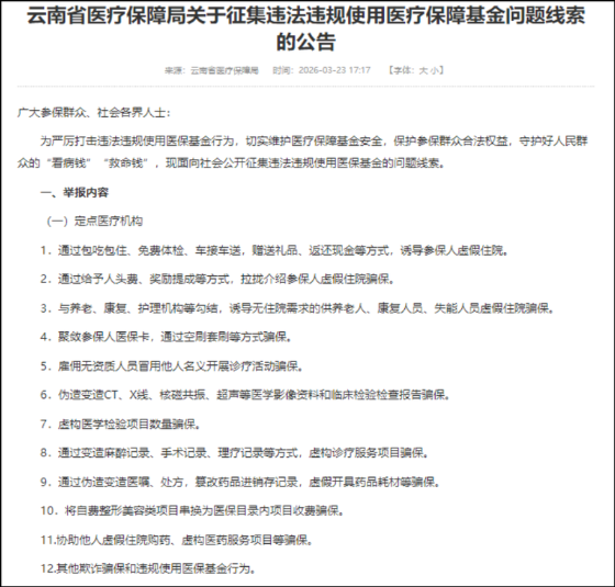 云南省醫(yī)療保障局關(guān)于征集問題線索的公告