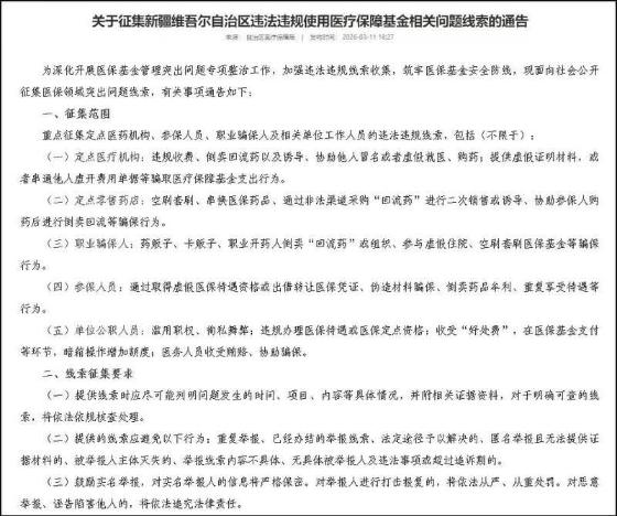 新疆維吾爾自治區(qū)醫(yī)療保障局關(guān)于征集問題線索的通告