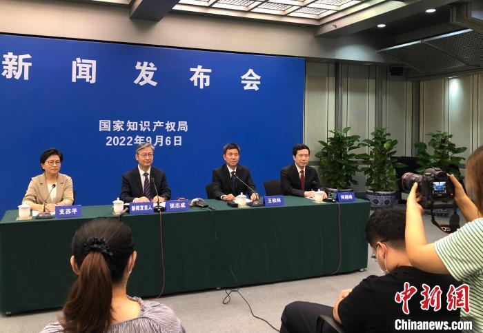 國家知識(shí)產(chǎn)權(quán)局舉行9月例行新聞發(fā)布會(huì)會(huì)場(chǎng)。 中新社記者 孫自法 攝