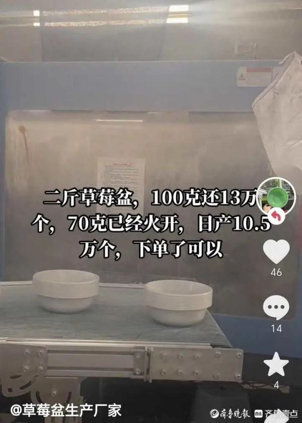 “沒(méi)辦法現(xiàn)在商家都是按盆賣,之前我還用這些盆子盛盛切好的菜或者拌拌涼菜,但后來(lái)聞著味道挺大,就不敢用了?!饼R女士說(shuō),現(xiàn)在她擔(dān)心草莓盆的安全問(wèn)題,買回家的草莓拿出來(lái)后多泡泡才會(huì)吃。