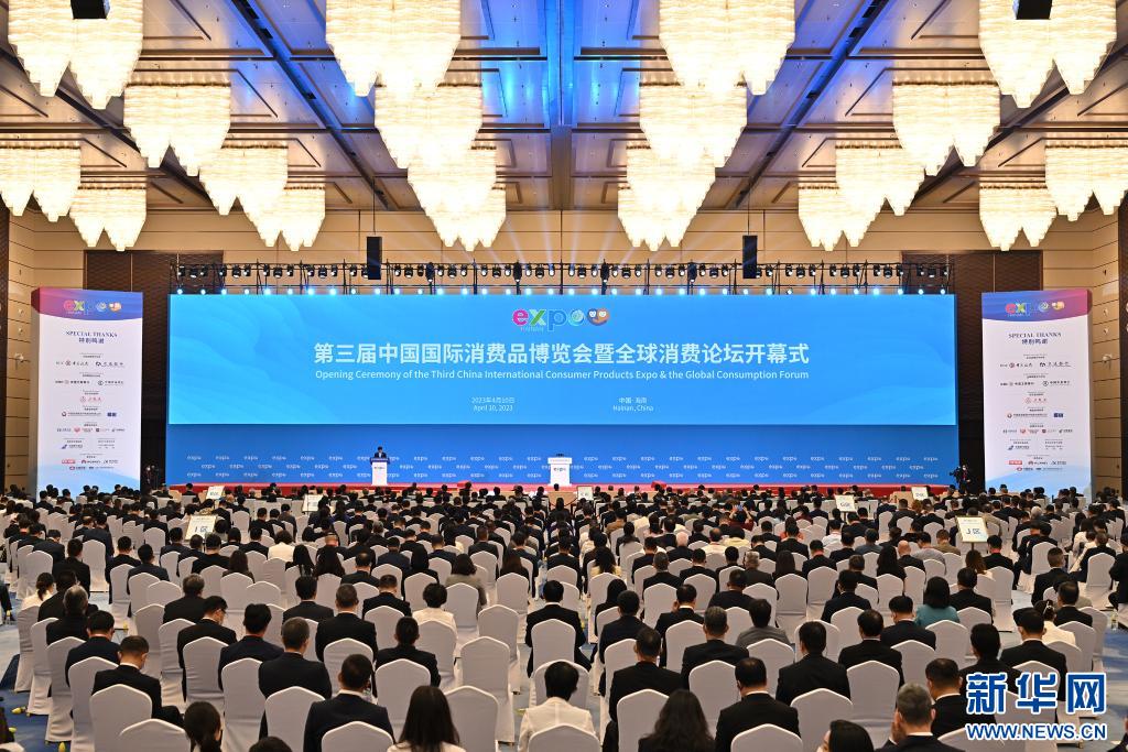 第三屆中國(guó)國(guó)際消費(fèi)品博覽會(huì)開幕,這是4月10日拍攝的開幕式現(xiàn)場(chǎng)。當(dāng)日,第三屆中國(guó)國(guó)際消費(fèi)品博覽會(huì)在海南??陂_幕。本屆消博會(huì)以“共享開放機(jī)遇、共創(chuàng)美好生活”為主題,將助力消費(fèi)恢復(fù)和升級(jí),為各國(guó)企業(yè)共享中國(guó)市場(chǎng)提供機(jī)遇。新華社記者 李鑫 攝
