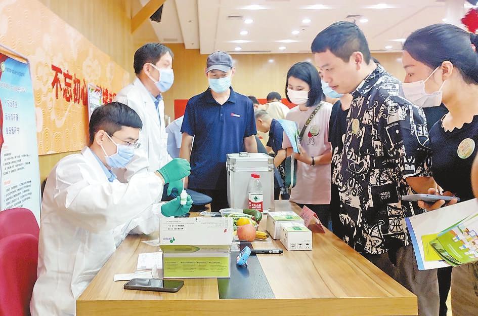 近日,北京市東城區(qū)王府井地區(qū)食品安全示范樓宇創(chuàng)建啟動儀式在王府井百貨大樓舉行。此次示范樓宇創(chuàng)建將采取政府主導和社會監(jiān)督相結合、部門監(jiān)管與業(yè)主自律相促進的辦法,充分發(fā)揮優(yōu)秀典范的帶動作用,全面提高食品經營者主體責任意識、誠信意識和食品安全管理水平。圖為啟動儀式上工作人員對社會關注度較高的食品進行現場檢測。(董芳忠)
