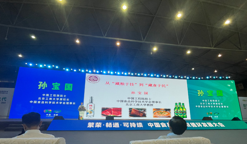 中國輕工業(yè)聯(lián)合會副會長、預(yù)制食品分會主任李玉中、陳存根教授出席并致辭。中國工程院院士、中國食品科學(xué)技術(shù)學(xué)會理事長孫寶國作《從“藏糧于技”到“藏食于民”》主題報告;國家戰(zhàn)略專家屈賢明作“中國食品產(chǎn)業(yè)高質(zhì)量發(fā)展路徑探索”主題演講;四川省食品飲料產(chǎn)業(yè)協(xié)會秘書長王剛作“食動中國 共建中國食品產(chǎn)業(yè)雙循環(huán)共同體”論述發(fā)言;中國農(nóng)科院老科協(xié)農(nóng)業(yè)規(guī)劃委員會會長、中國林業(yè)與環(huán)境促進(jìn)會生態(tài)原產(chǎn)地委員會會長、全國生態(tài)食材評定中心主任孫健教授作“中國生態(tài)食材食品、生態(tài)美食地標(biāo)助力鄉(xiāng)村振興《生態(tài)產(chǎn)品區(qū)域公用品牌》價值實現(xiàn)”主題發(fā)言。