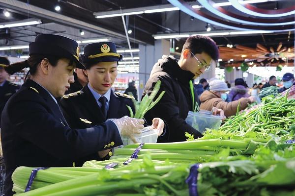 圖為日前該局執(zhí)法人員在一市場抽取食品樣品。劉娜 郭虹 文/攝
