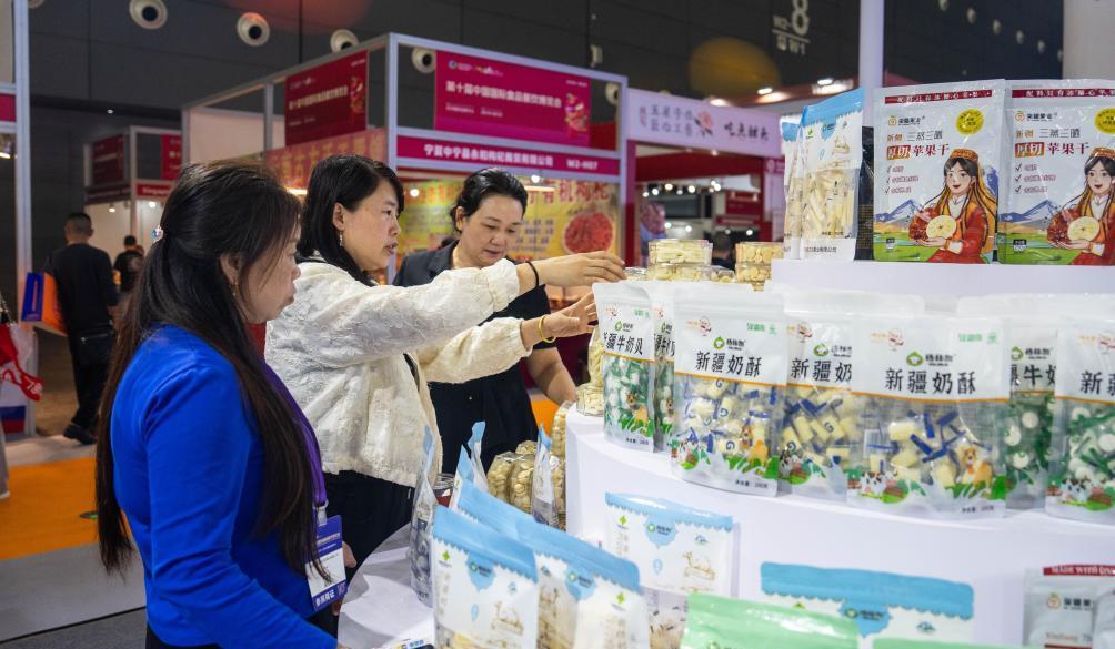 9月19日,在長沙國際會展中心,觀眾(中)在了解展出的奶制品。新華社記者 陳思汗 攝