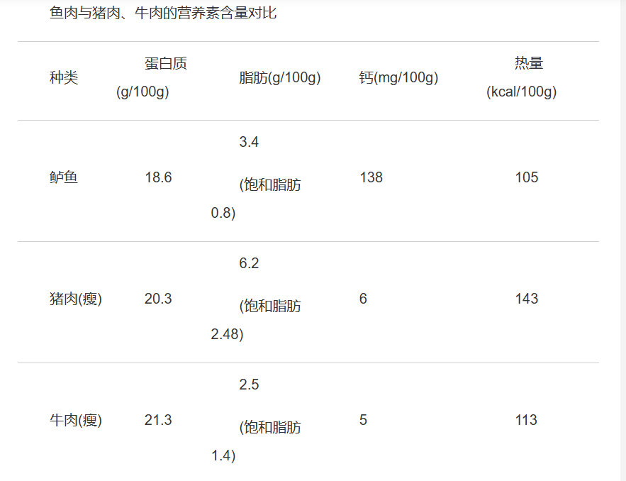 魚(yú)肉作為“白肉”的一種,比起豬牛羊肉來(lái)說(shuō),熱量和飽和脂肪的含量更低,鈣等礦物質(zhì)的含量相對(duì)更高,可以作為減重、減脂期的優(yōu)質(zhì)蛋白質(zhì)來(lái)源。