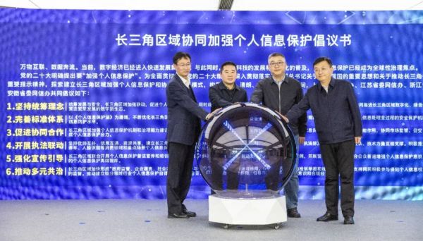 中央網(wǎng)信辦有關(guān)部門負(fù)責(zé)同志,上海、江蘇、浙江、安徽“三省一市”網(wǎng)信辦負(fù)責(zé)同志出席論壇開幕式。開幕式上發(fā)布了《長(zhǎng)三角區(qū)域協(xié)同加強(qiáng)個(gè)人信息保護(hù)倡議書》,提出堅(jiān)持統(tǒng)籌理念、完善標(biāo)準(zhǔn)體系、促進(jìn)協(xié)同合作、開展執(zhí)法聯(lián)動(dòng)、強(qiáng)化宣傳引導(dǎo)、推動(dòng)多元共治等六項(xiàng)倡議。華東政法大學(xué)、上海社科院聯(lián)合評(píng)估項(xiàng)目組同時(shí)發(fā)布了“亮劍浦江”專項(xiàng)執(zhí)法行動(dòng)績(jī)效評(píng)估報(bào)告。報(bào)告總結(jié)了今年6月以來上海市網(wǎng)信辦、上海市市場(chǎng)監(jiān)管局會(huì)同相關(guān)行業(yè)主管部門開展消費(fèi)領(lǐng)域個(gè)人信息權(quán)益保護(hù)專項(xiàng)行動(dòng)的成果成效,并就協(xié)同構(gòu)建個(gè)人信息保護(hù)長(zhǎng)效治理機(jī)制提出建議。上海市消保委等參與“亮劍浦江”專項(xiàng)執(zhí)法行動(dòng)的11家優(yōu)秀單位受到表彰。