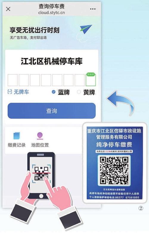 圖②:重慶“純凈版”停車?yán)U費(fèi)二維碼及掃碼顯示圖。