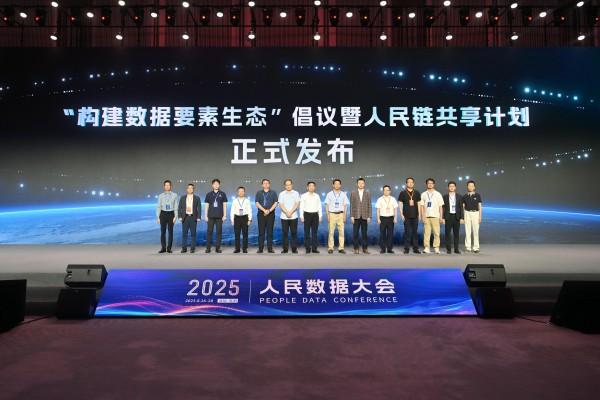 “構(gòu)建數(shù)據(jù)要素生態(tài)”倡議暨人民鏈共享計(jì)劃在2025人民數(shù)據(jù)大會(huì)上發(fā)布。人民網(wǎng)記者 翁奇羽攝