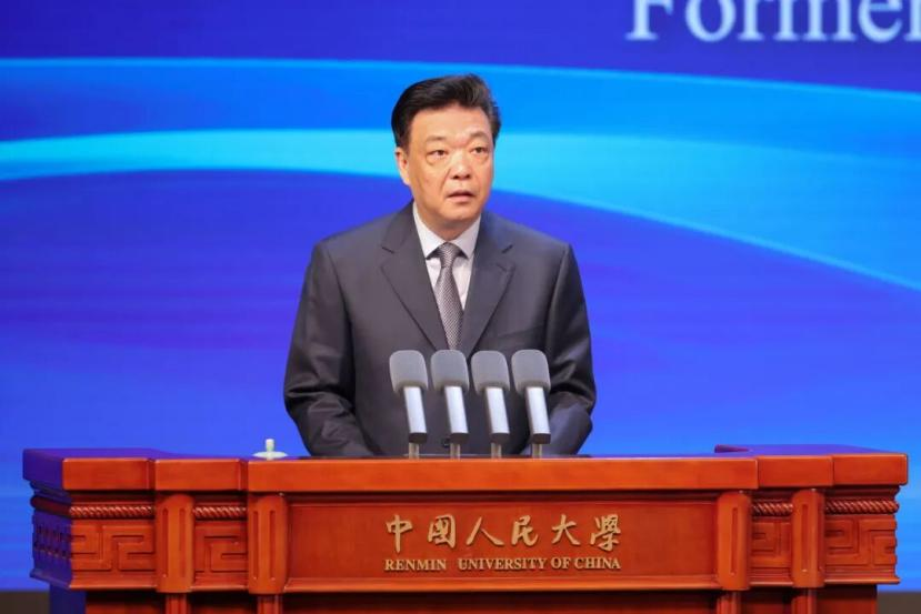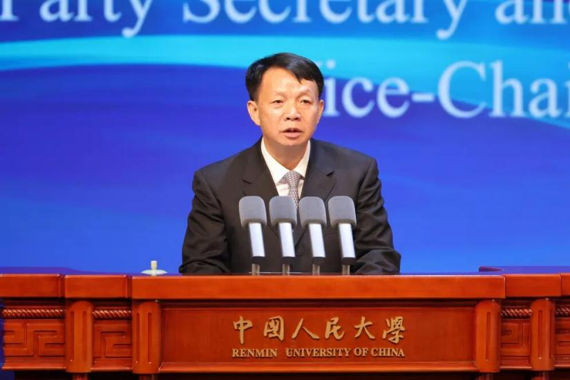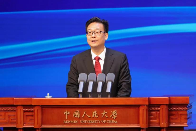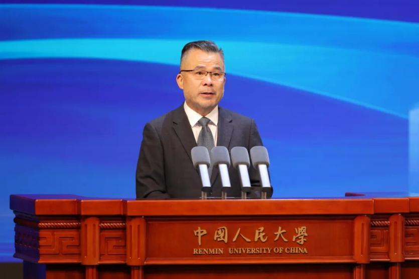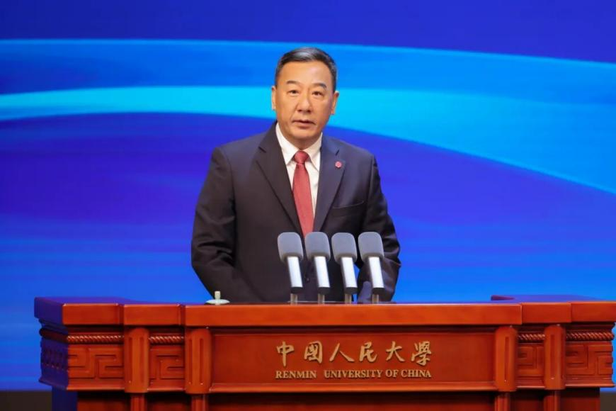 圖為中國人民大學(xué)黨委書記張東剛在開幕式致辭。