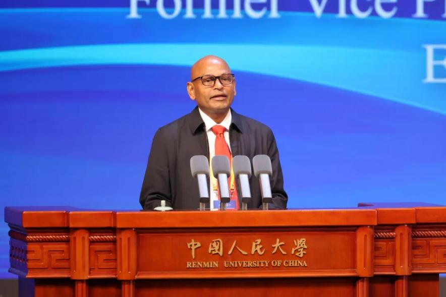圖為中央社會(huì)主義學(xué)院原黨組書記、第一副院長(zhǎng)吉林發(fā)表主旨演講。