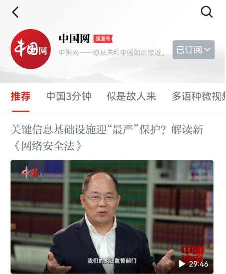 中國網(wǎng):小切口 深挖掘 廣輻射 推動新修改《網(wǎng)絡安全法》貫徹實施