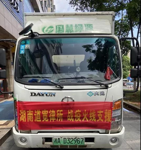 湖南道寬律師事務(wù)所黨支部組織律所全體黨員、律師及工作人員開(kāi)展募捐活動(dòng),并將募集的3萬(wàn)余元善款用于購(gòu)買(mǎi)防疫物資,8月6日雇車(chē)將7000個(gè)口罩、1噸消毒液和酒精、1000對(duì)防疫手套等物資送往長(zhǎng)沙縣黃花鎮(zhèn),支持村民抗擊疫情。