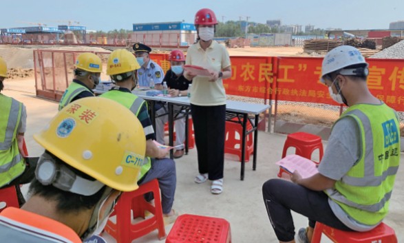 這樣的討薪案,丁明已經(jīng)處理了很多。在安徽,她長(zhǎng)期負(fù)責(zé)牽頭組織全省各級(jí)法律援助機(jī)構(gòu)開展農(nóng)民工維權(quán)專項(xiàng)行動(dòng),深知從源頭預(yù)防的重要性。于是到東方市后,她積極開展“民法典進(jìn)工地”等法律宣傳活動(dòng),普及民法典中的相關(guān)法律知識(shí),編印了勞動(dòng)法律知識(shí)問答宣傳手冊(cè),引導(dǎo)農(nóng)民工學(xué)法守法、依法維權(quán)。