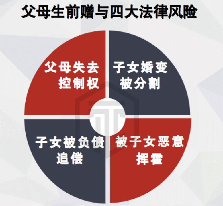 但從財(cái)富傳承角度來看,贈(zèng)與也同樣存在著缺陷。一旦贈(zèng)與行為完成,傳承人會(huì)失去對(duì)財(cái)產(chǎn)的控制,若受贈(zèng)人不孝或不盡贍養(yǎng)義務(wù)、發(fā)生婚變、缺乏駕馭財(cái)產(chǎn)的能力、對(duì)外負(fù)債或隨意揮霍財(cái)產(chǎn),都可能導(dǎo)致財(cái)產(chǎn)的流失。