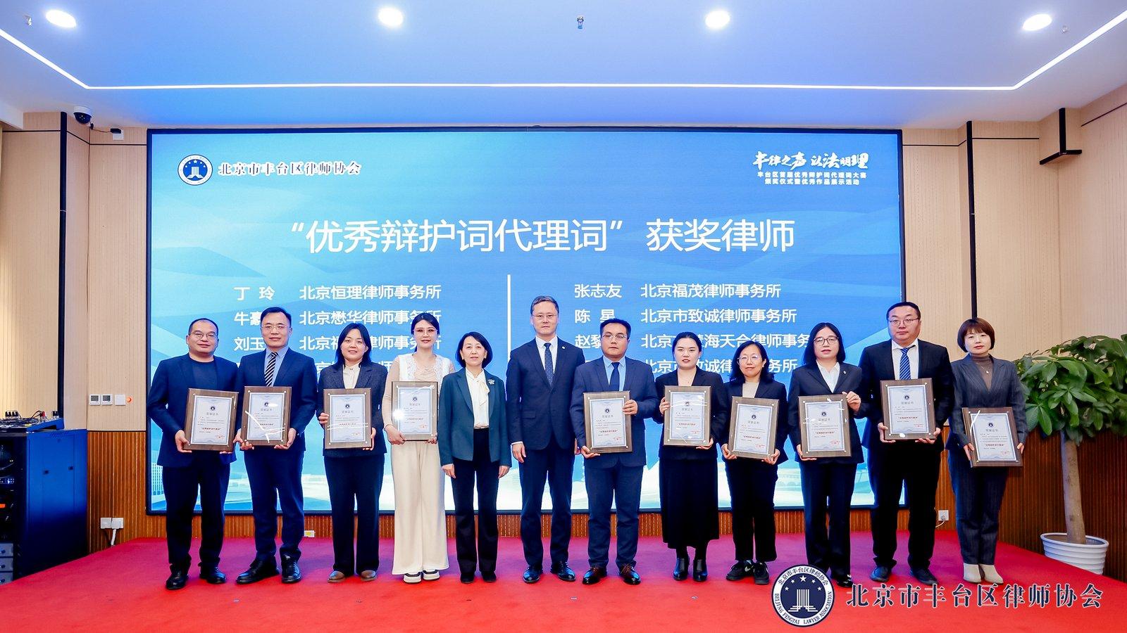 12月3日,由北京市豐臺(tái)區(qū)司法局指導(dǎo),豐臺(tái)區(qū)律師協(xié)會(huì)主辦的首屆優(yōu)秀辯護(hù)詞代理詞大賽頒獎(jiǎng)儀式暨優(yōu)秀作品展示活動(dòng)圓滿(mǎn)收官。北京市律師協(xié)會(huì)副會(huì)長(zhǎng)郝春莉,豐臺(tái)區(qū)委政法委副書(shū)記王文征,豐臺(tái)區(qū)司法局黨組成員、副局長(zhǎng)佟穎,北京市律師協(xié)會(huì)副會(huì)長(zhǎng)、豐臺(tái)區(qū)律師協(xié)會(huì)會(huì)長(zhǎng)胡占全等領(lǐng)導(dǎo)及行業(yè)知名專(zhuān)家出席活動(dòng),豐臺(tái)區(qū)律師協(xié)會(huì)品牌建設(shè)委員會(huì)主任時(shí)福茂主持大會(huì)。