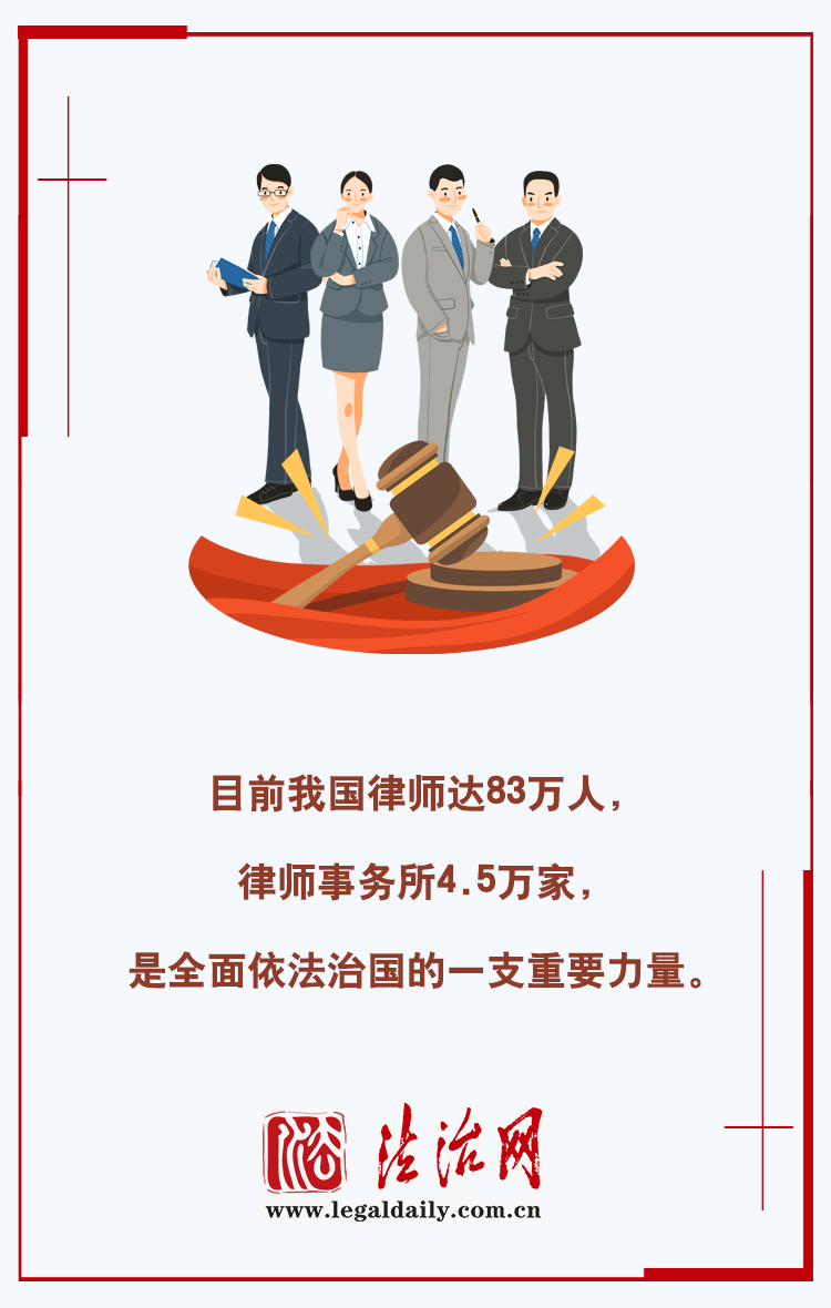 目前,我國律師達(dá)83萬人,律師事務(wù)所4.5萬家,是全面依法治國的一支重要力量?!笆奈濉逼陂g,司法部在引導(dǎo)好、管理好、服務(wù)好律師隊伍上持續(xù)采取務(wù)實措施,團(tuán)結(jié)凝聚廣大律師充分發(fā)揮職能作用。律師工作哪些亮點不容錯過?一圖解鎖!