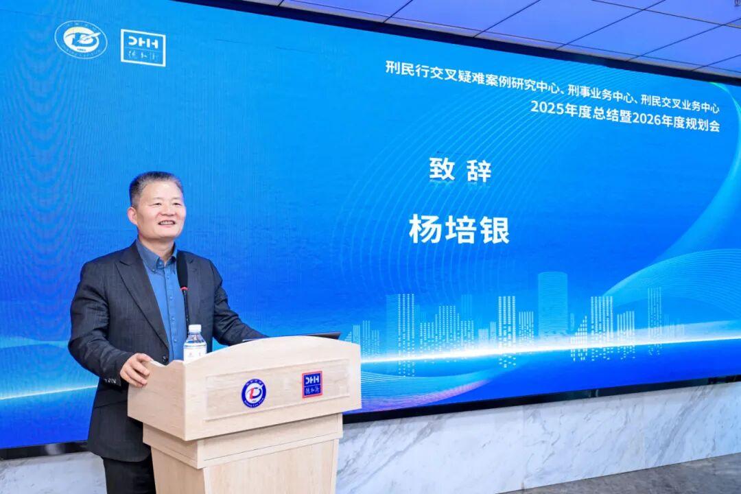 山東德衡律師事務(wù)所高級權(quán)益合伙人、執(zhí)行總裁、刑民行交叉疑難案例研究中心顧問楊培銀主任在開幕致辭時(shí)對山東大區(qū)業(yè)務(wù)中心尤其是三大中心的活動表示充分肯定,對中心在2025年取得的案件成果、團(tuán)隊(duì)建設(shè)及社會影響力提升等方面給予高度評價(jià),倡導(dǎo)關(guān)注跨領(lǐng)域協(xié)同研究在應(yīng)對復(fù)雜案件中的實(shí)踐價(jià)值。他希望三大中心2026年在復(fù)雜案件應(yīng)對與創(chuàng)新法律服務(wù)領(lǐng)域持續(xù)引領(lǐng)行業(yè)方向。