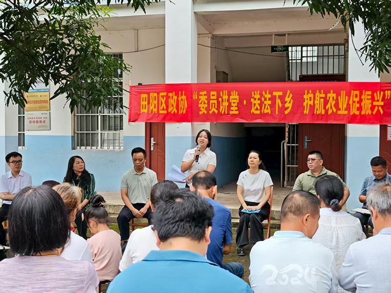 圖為百色市政協(xié)委員班雁霞到百色市田陽區(qū)坡洪鎮(zhèn)郎含村開展“委員講堂·送法下鄉(xiāng) 護(hù)航壯鄉(xiāng)促振興”專項(xiàng)活動。