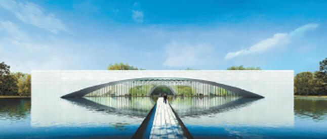 從項(xiàng)目效果圖上不難看出,該中心主體建筑猶如一塊晶瑩剔透的方石鑲嵌在湖面上,方石下面弧形正門,與湖面的倒影構(gòu)成一只眼睛,因此,也被稱為雄安“數(shù)字城市之眼”。