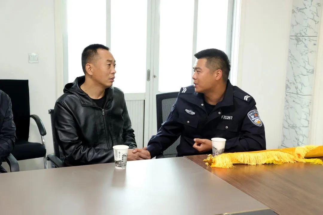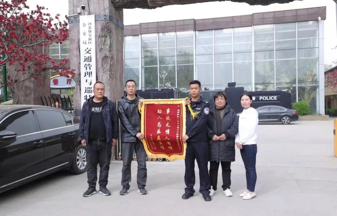 4月11日上午,武先生來到雄安新區(qū)公安局交巡特支隊,將一面寫有“事故無情人有情 助人為樂顯真情”字樣的錦旗送到留置保障大隊隊員劉沖手中。