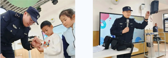 為滿足小朋友們的好奇心,民警現(xiàn)場展示了一些日常警用裝備,并講解了警用裝備的性能、作用和使用方法,讓小朋友們對(duì)警察這份職業(yè)有了更深刻的認(rèn)識(shí)和了解。