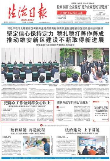 據(jù)《法治日報(bào)》記者了解,近年來,雄安新區(qū)一手抓陣地建設(shè),一手建體制機(jī)制,一手提服務(wù)水平,三管齊下打造群眾工作的“雄安樣板”。