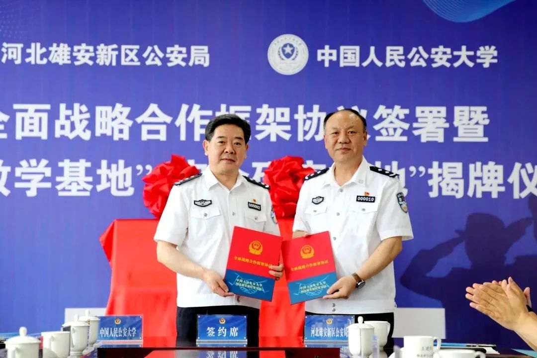 為充分發(fā)揮公安機關(guān)職能作用,支持服務(wù)保障高標準高質(zhì)量推進雄安新區(qū)建設(shè),5月30日上午,雄安新區(qū)公安局與中國人民公安大學(xué)舉行全面戰(zhàn)略合作框架協(xié)議簽署暨“實踐教學(xué)基地”“安全研究基地”揭牌儀式。