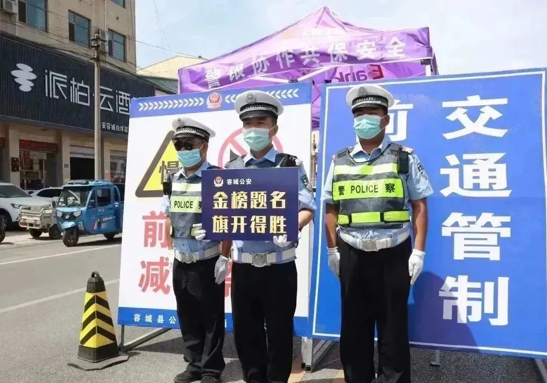 為全力做好高考道路交通安全管理工作,雄安公安周密部署,深入各考點(diǎn)開(kāi)展道路交通安全隱患排查,交警部門安排騎警為集中乘車考生開(kāi)啟“綠色通道”,全程保障道路交通安全暢通;同時(shí),在考點(diǎn)周圍、干線公路進(jìn)行交通優(yōu)化,設(shè)置交通提示標(biāo)識(shí)、禁止鳴笛標(biāo)志,降低車輛噪音,及時(shí)快速疏導(dǎo)交通擁堵,堅(jiān)決確??忌窘?jīng)道路絕對(duì)安全、絕對(duì)暢通。