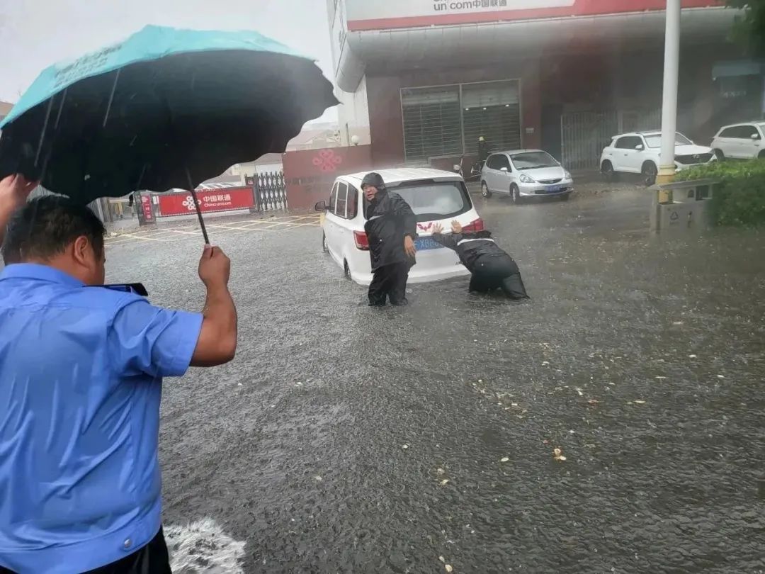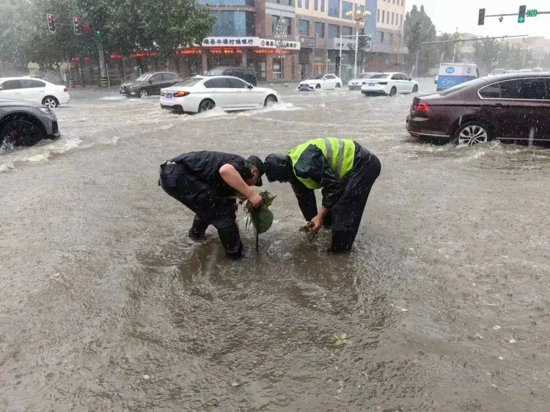 暴雨中,執(zhí)勤民輔警縱然全身濕透,依然堅守在各自崗位,及時排查積水隱患、推移拋錨汽車、疏導(dǎo)分流車輛、幫助受困群眾。在積水嚴(yán)重位置安排專人執(zhí)勤,發(fā)現(xiàn)積水影響交通通行的,實施交通管制,提醒過往車輛安全駕駛,確保人民群眾生命財產(chǎn)安全。