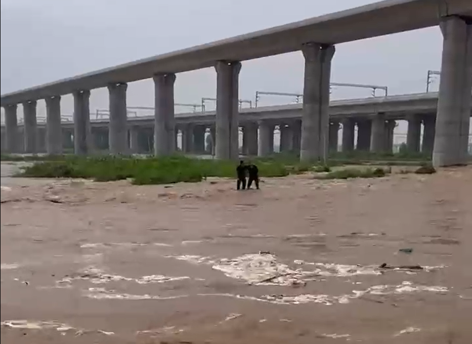 8月1日上午11時(shí)45分許,雄安站樞紐片區(qū)公安分局民警接到110接警中心派警:兩名男子在雄安站南大堤分洪道內(nèi)觀察水位,因水位突然上漲被困在泄洪渠內(nèi),急需幫助。