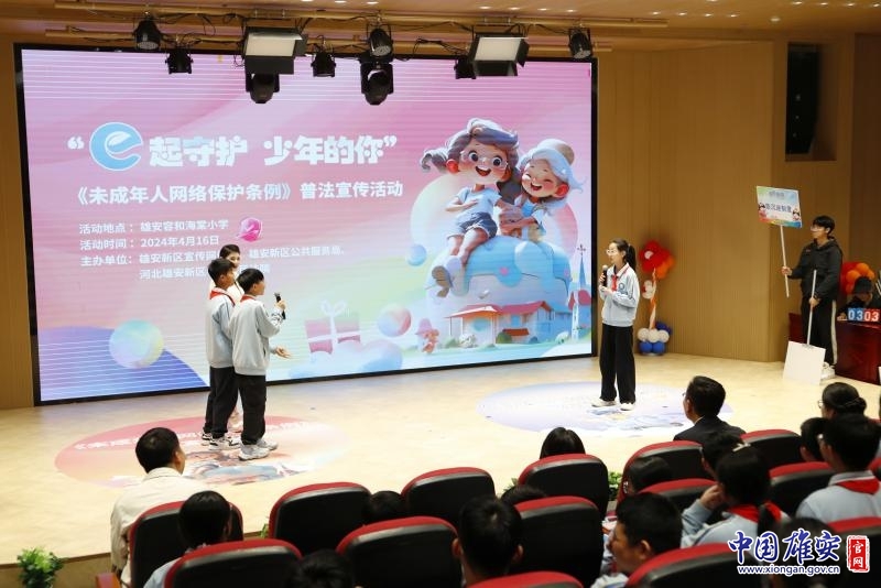中國雄安官網(wǎng)4月17日電(甄星)《未成年人網(wǎng)絡(luò)保護條例》已于2024年1月1日施行。作為我國第一部專門性的未成年人網(wǎng)絡(luò)保護綜合立法,該條例對于健全未成年人網(wǎng)絡(luò)保護制度體系,保障未成年人合法權(quán)益具有重要意義。為進一步提高未成年人網(wǎng)絡(luò)安全和個人信息保護意識,提升未成年人網(wǎng)絡(luò)素養(yǎng),構(gòu)筑未成年人網(wǎng)絡(luò)安全屏障,4月16日,“e起守護 少年的你”《未成年人網(wǎng)絡(luò)保護條例》普法宣傳活動在雄安容和海棠小學(xué)舉辦。該活動由雄安新區(qū)宣傳網(wǎng)信局、雄安新區(qū)公共服務(wù)局和河北雄安新區(qū)中級人民法院聯(lián)合舉辦,共有200余名師生參加。