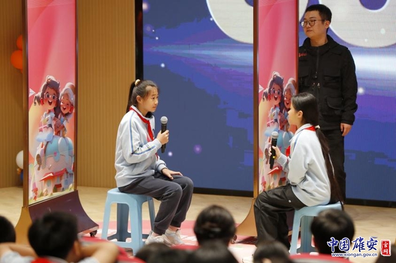 在傳聲游戲中,學(xué)生將現(xiàn)場記憶的《未成年人網(wǎng)絡(luò)保護條例》內(nèi)容傳遞給下一名同學(xué)。中國雄安官網(wǎng)李鑫 攝