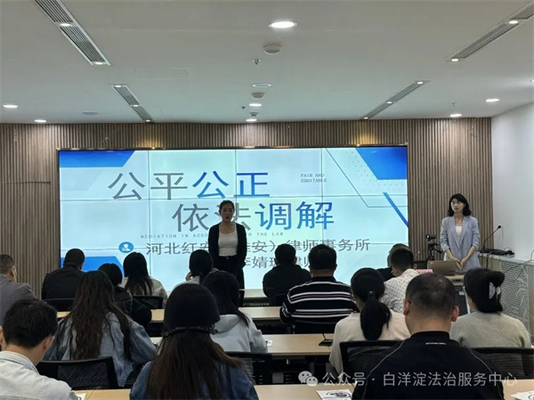 為進一步增強容東片區(qū)社會治理法治化水平,提升社區(qū)骨干調解能力和業(yè)務能力,河北雄安新區(qū)白洋淀法治服務中心在容東片區(qū)開展了人民調解技能培訓,邀請河北紅安(雄安)律師事務所李婧璇律師普法授課。